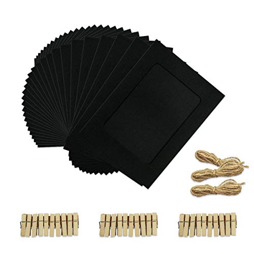 Aosilon Marco de Fotos de Papel 30PCS Marco de Imagen de Papel Kraft de 5x7 Pulgadas con Mini Pinzas para la Ropa y Hilo de Yute