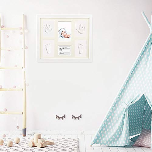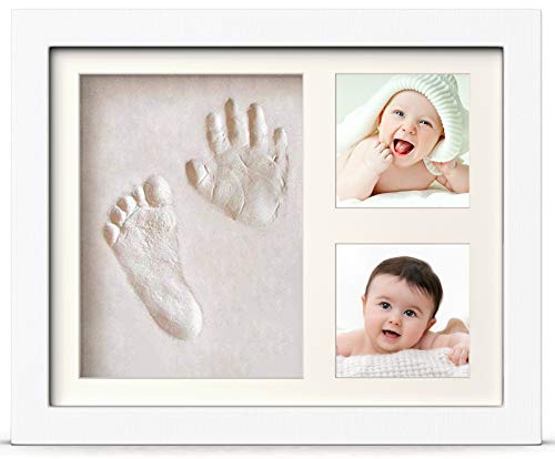 - ?. Kits de impresión para bebés: vienen con un juego de huellas para bebés, un marco de madera, arcilla autoendurecible, una tarjeta de impresión para bebés, un rodillo. Y el hermoso marco grande de madera blanca guarda más de tus recuerdos.