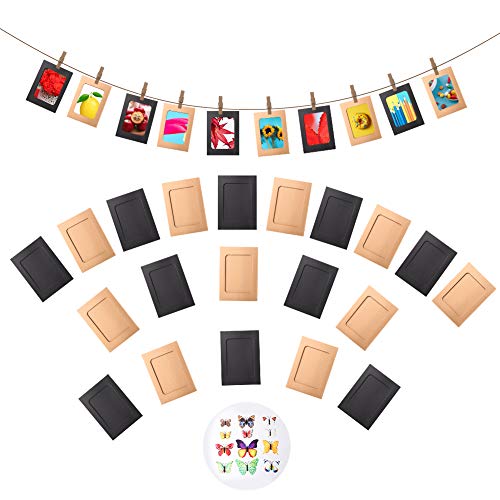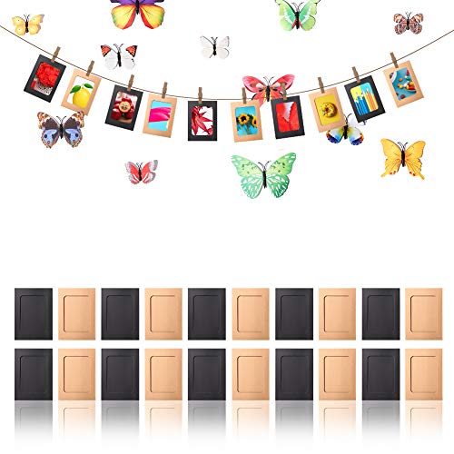 OOTSR 20Pcs DIY Paper Photo Frame 6’’x4.5’’ con decoración de Pared Mariposas simulación, se Adapta a Fotos de 5 ’’, Marcos de Fotos Organizador de Fotos Collage con Pinzas para la Ropa y Cuerda