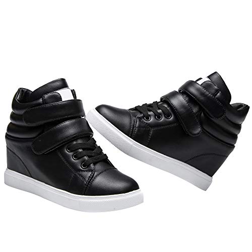 amropi Mujer Cuña Interior Tops Altos Gancho y Bucle Casual Zapatillas de Moda(Negro,38 EU)