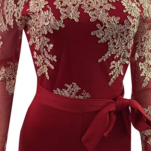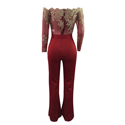 RISTHY Monos De Vestir Mujer Fiesta Fuera del Hombro Manga Larga Alto Cintura Elástico Vintage Atada con Pierna Ancha Otoño Invierno Encaje Monos Largos Cóctel Monos de Fiesta Pantalones