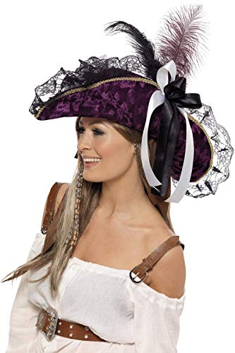 Smiffy'S 33623 Sombrero De Pirata Merodeadora Con Plumas Y Lazo, Púrpura, Tamaño Único