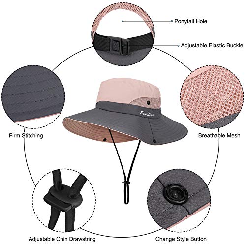 - Tejido transpirable: este sombrero de sol de pesca de moda para mujer está hecho de poliéster y algodón transpirable de secado rápido y ligero. Viene con forro de malla y una banda de sudor que absorbe el sudor, absorbe más la humedad, deja la cabeza ventilada y fresca incluso en los días más calurosos y húmedos.