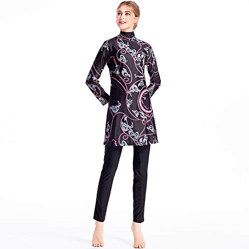 Grsafety Impresión Mujeres Musulmanas Traje de baño - 3 Piezas Modeste Burkini Completa Muslim Swimwear con Hijab Burqini Beachwear Tankini, Marrón, XL