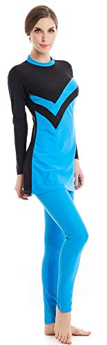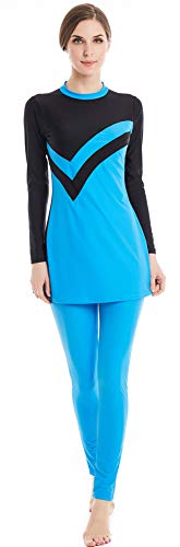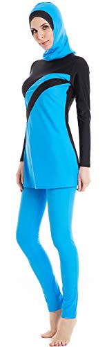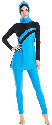 Nuevo Musulmán Trajes de baño para Mujer islámico Hijab Modesto Muslim Swimwear Completo Cubrir Nadando Ropa de Playa Nadar Traje Disfraz (Azul -3, Int'l S)
