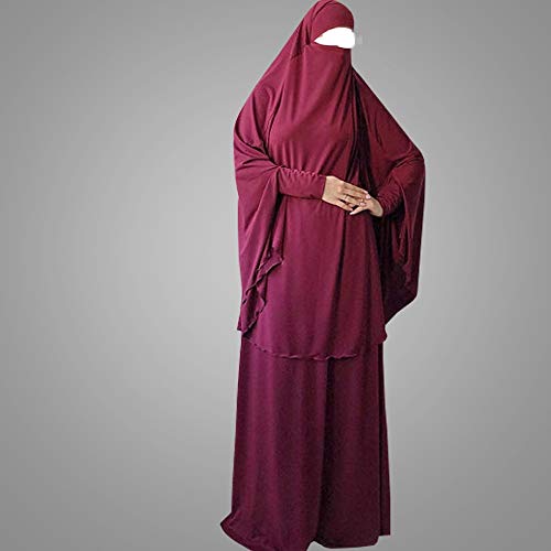 Without logo ZCPCS Ramadán 2 Piezas oración Musulmana de Prendas de Vestir Piel de Las Mujeres Hijab Abaya Jilbab Maxi Vestido Khimar Burka Ropa islámica de Arriba del Traje árabe