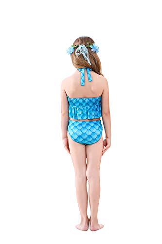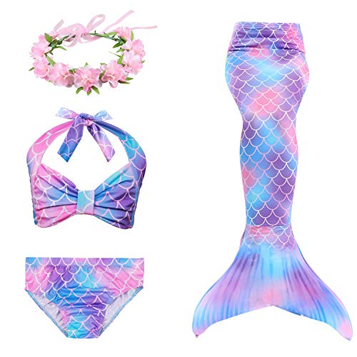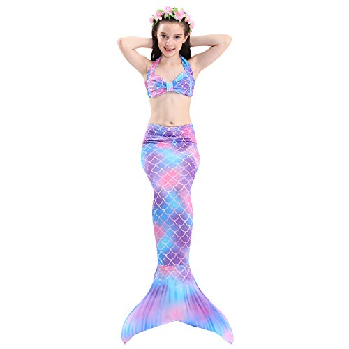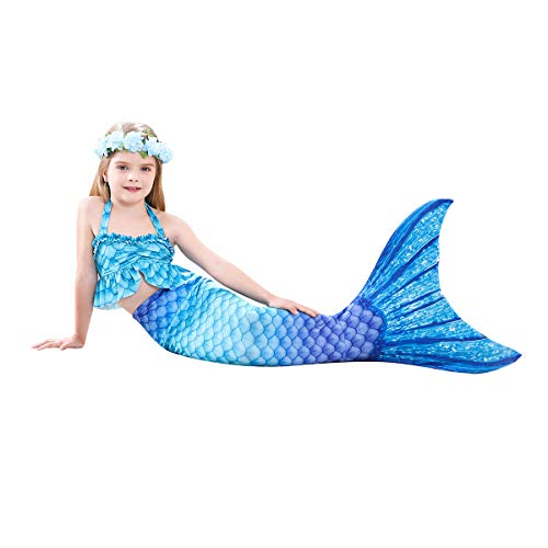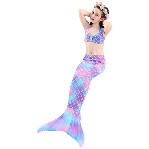 Romance Zone Cola de Sirena para Natación 5pcs Traje de BaƱo Mermaid Bikini Establece Disfraz de Sirena para NiƱa Princesa Cosplay Conjuntos con Diadema de Flores y MonofĆn