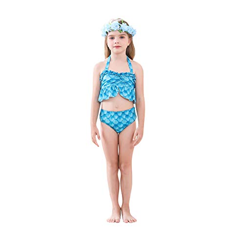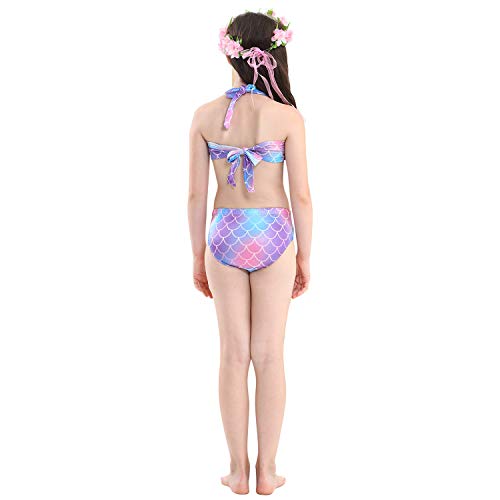 Traje de baƱo de 3 piezas, bikini, tankini, con cola de sirena y diadema de flores para niƱas DH48. 6-7 AƱos