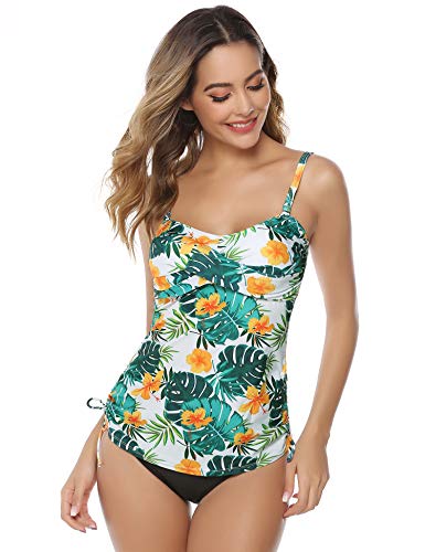 Hawiton Tankini para Mujer Traje de BaƱo de Dos Piezas Tirantes Ajustables Tops Tankini con Breifs, DiseƱo de Flores BaƱadores para Playa, Piscina, Vacaciones