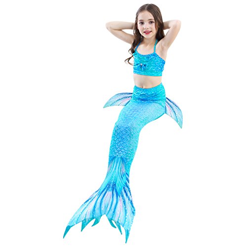 HHD® 3Pcs Establece bañadores niña Traje de baño Bañador De Sirena Disfraz De Princesa Bikini niña Cola de Sirena para Nadar Las niñas Bikini de Traje de baño