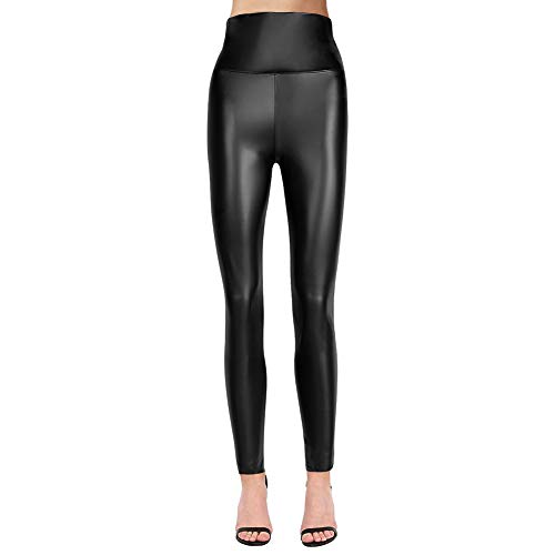 teemzone Mujer PU Leggings Cuero Skinny ElƔsticos Pantalones