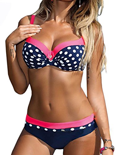 Voqeen Mujer Bikini de Gradiente de Color Establece Retro Empuja hacia Arriba Dos Piezas Acolchadas Lunares/Rayas/Cristal Impresa Ropa de Playa Traje de baƱo