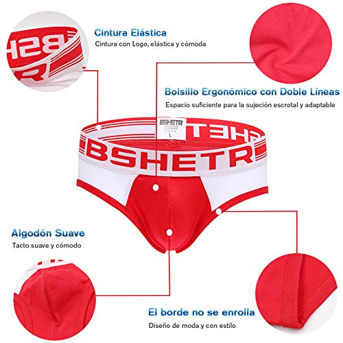 BSHETR Calzoncillos Slip de Algodón Transpirable Ropa Interior para Hombre Elástica (R688, M)