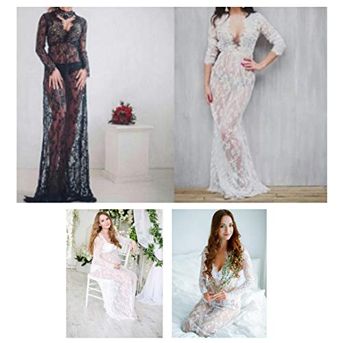 ohyeahlady Mujer Kimono Sexy Lencería Transparente Largo Vestido Embarazada para Fotos Encaje Talla Grande