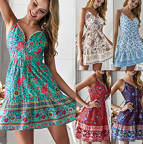 Vestidos Mujer Casual Verano Vintage Playa Escote en V Vestidos Sexys Y Elegantes Moda Mujer 2019 Rebajas Vestidos De Fiesta para Comuniones Vestidos Sin Mangas Mini Falda Dress