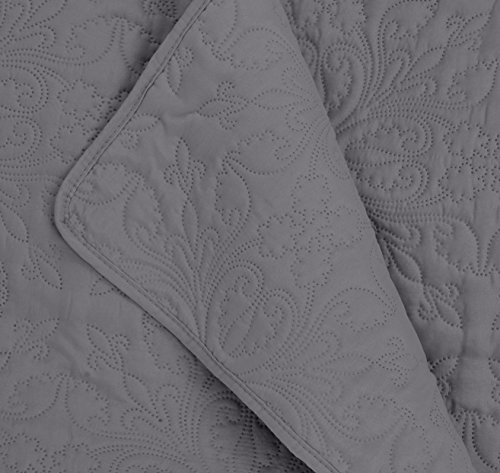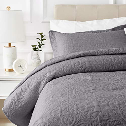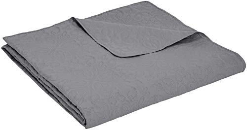 Amazon Basics – Colcha labrada extragrande, Gris oscuro, floral, 220 x 240 cm
