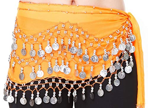 Moderno pañuelo de gasa de Hoter, para colocar en la cadera, con monedas plateadas colgando para bailar la danza del vientre