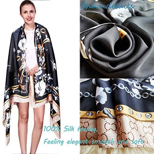 - ✔Material: Satén de seda. Material de seda hace que la piel muy fresco cuando hace calor, a mantener su piel del sol expuesta.Se puede utilizar como bufanda, pañuelo de verano, ropa de playa, falda del abrigo, bufanda cabeza, pañuelos.