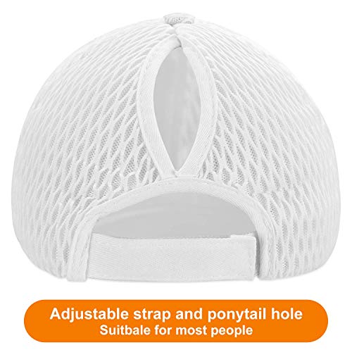 LIVACASA Gorras de Béisbol para Mujeres Baseball Cap para Deportes 1 Pcs Algodón Transpirable Cola de Caballo para Verano Blanco