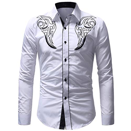 Luckycat Camisas Casual Hombre Camisa de Hombre Manga Larga Negocio Ajustado Botón Formal Retro Bordado Impresión Blusa Tops Camiseta para Hombre Camisa Slim Fit Business
