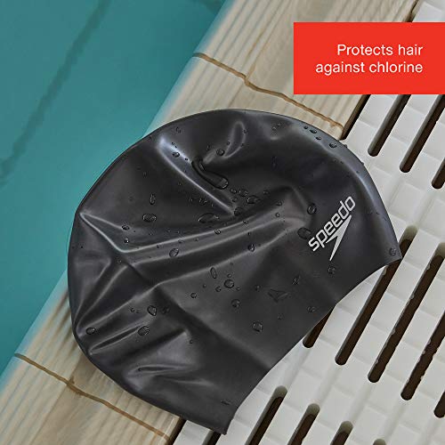 - El gorro ayuda a proteger el cabello largo del cloro.