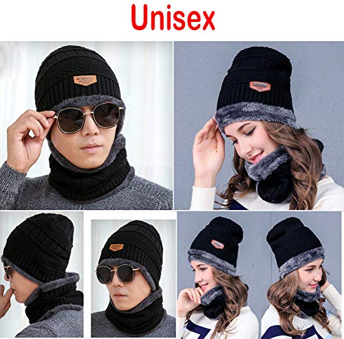 - Sombrero y bufanda a prueba de viento: hecho de fibras acrílicas de punto gruesas y cómodas, el sombrero y la bufanda de punto son suaves y cálidos con un forro polar suave, tejido grueso y apretado con gran elasticidad que puede cubrir bien la cabeza y el cuello, funciona bien contra el viento y polvo en días fríos