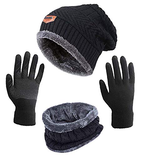- Accesorios 3-en-1 de invierno: Viene con Gorro, bufanda y guantes de punto lo mantendrán alejado del frío; ideal para actividades al aire libre y al día cálido
