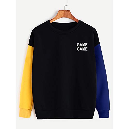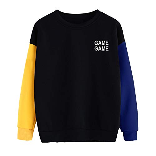 VJGOAL Mujeres Casual Personalidad de la Moda Costura Color Block Manga Larga Carta de Impresión O-Cuello Sudadera Pullover Top Blusa(L,Azul1…