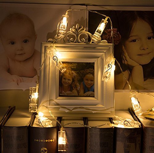 EleganBello Cadena de luces con pinzas 2m 20 LED Cadena de luces con pinzas 2 modos de luz Blanco cálido Guirnalda de luces con Clips para fotos ideal para colgar fotos, notas, Memos y de arte