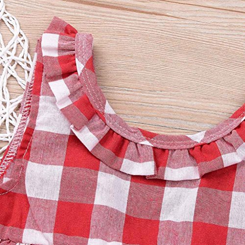 Fossen Ropa Bebe Niña Verano Recien Nacido Bebé Tops de Cuadros Y Caqueros Corto con Banda de Pelo (6 Meses, Rojo)