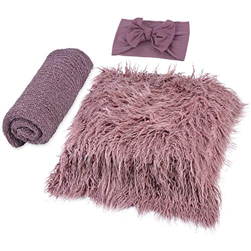 Newborn Fotografia, ZOYLINK Envolver Bebe Diadema de Bebé Fotos de Bebés Accesorios Mantas Para Bebés Mantita de Pelo Ideal Para Hacer Fotos a Bebés. (púrpura)