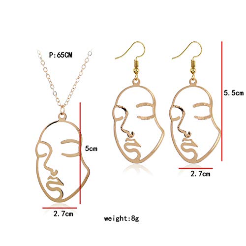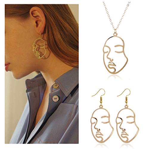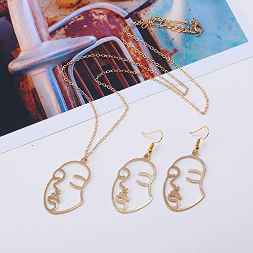 Picasso Face Earrings Face Necklace Set Gold Silver Vintage Abstract Statement Dangle Earrings for W omen Chicas dorado