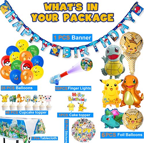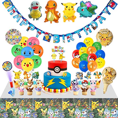 - Suministros Perfectos para la Fiesta: Compatible para fiestas de cumpleaños de niños o pequeñas fiestas temáticas de pika. Nuestro juego incluye banderas y manteles, y todas las que ayudará para sea mágica la fiesta del cumpleaños de su hijo.