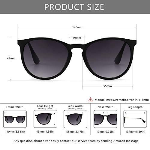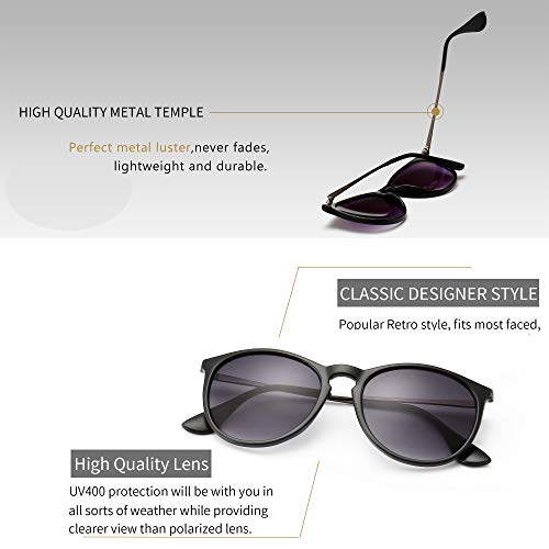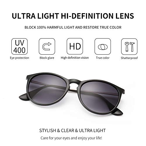 SUNGAIT ClƔsico Retro Gafas de sol Mujer Hombre Redondas Unisex 400 UV Fregar Negro/Gradiente Gris 1567