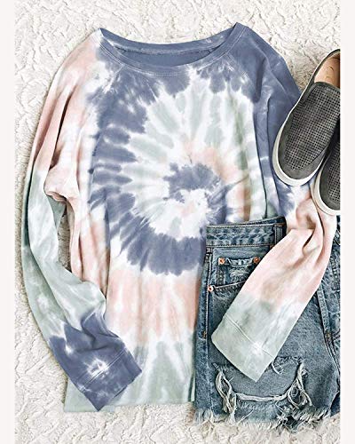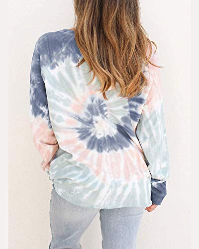 ABINGOO Mujer Sudadera con Tie Dye la Camiseta Manga Larga Sudadera con Capucha Sweatshirt Casual Blusa Tops,Azul,S