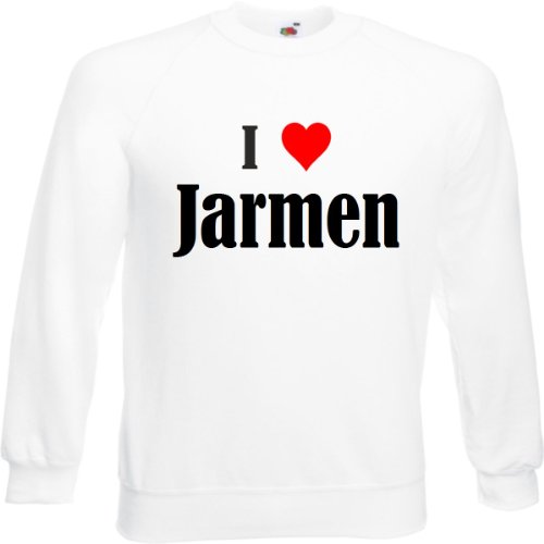 Reifen-Markt Sudadera I Love Jarmen para mujer, hombre y niños en los colores negro, blanco y azul con impresión Blanco XXL