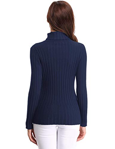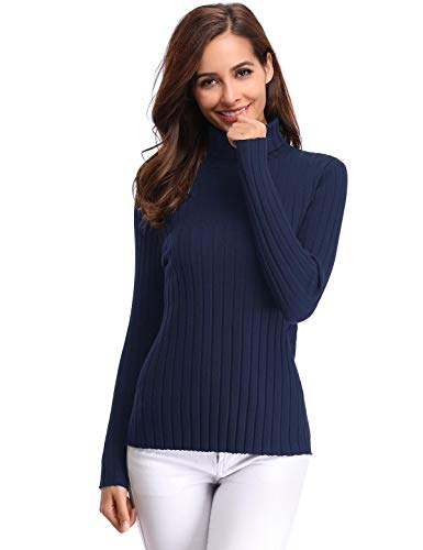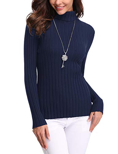 Aibrou Jersey de Mujer Sólido Ligero Suave Elástico Manga Larga Pull-Over Suéter Jersey de Cuello Alto ( Armada , L )