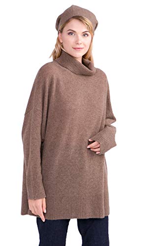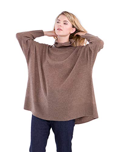 cashmere 4 U Jersey de cuello alto de cachemira 100 % para mujer, talla grande Marrón (Marron). L