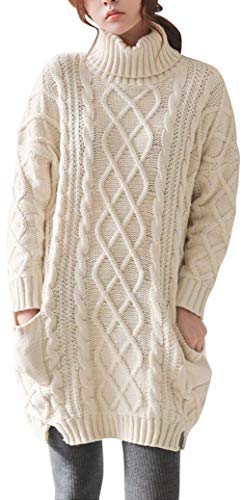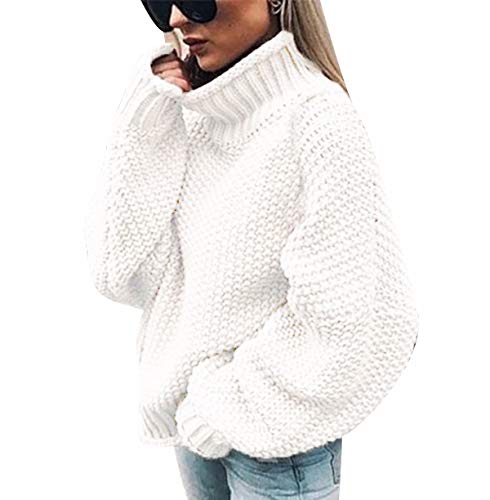 Jersey Punto Cuello Alto Mujer Oversize Sueter Mujer Suéter Jerséis Trenzas Jerseys Grueso Mujeres Sueteres Manga Larga Invierno Suéteres Señora Pullover Sweater Holgado Tallas Grandes Flojo Blanco S
