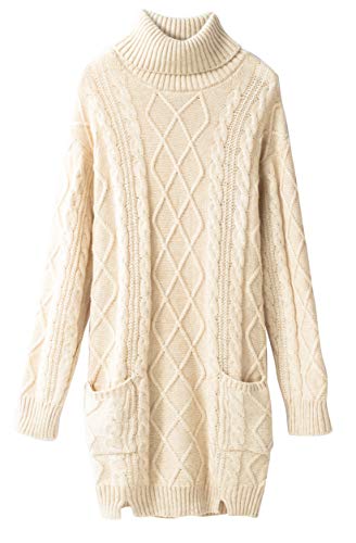 LinyXin Cashmere Vestido de invierno de cachemir para mujer, cuello alto, manga larga, cálido, jersey de punto, suéter de lana