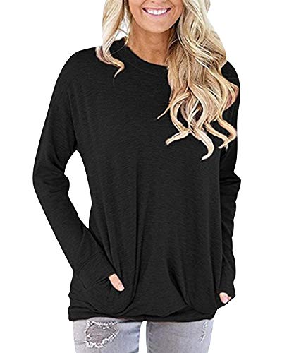 Sudaderas Mujer Sudadera Chica Oversize Sudaderas Lisas sin Capucha Señora Basicas Casual Anchas Jersey Camisetas Manga Larga Mujer Tallas Grandes Deportivas Bonitas Simples Largas Negro S