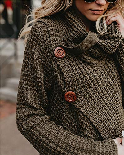 Jerseys De Punto para Mujer Cuello de Tortuga Manga Larga Suelto Prendas de Punto Suéter Irregular Jerséis Collar de la Pila Tops Cálido Otoño Invierno riou
