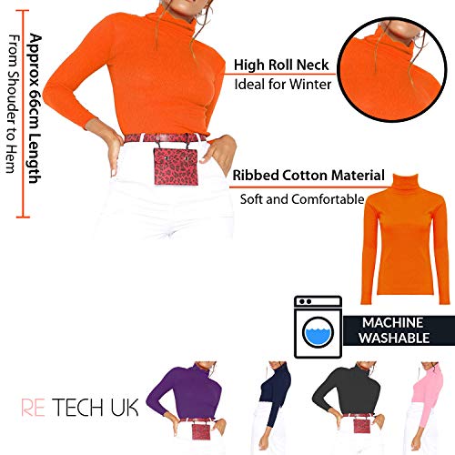 Jersey Acanalado para Mujer - Cuello de Cisne y Manga Larga - Algodón - Naranja - M/L - UK 12-14/EU 40-42