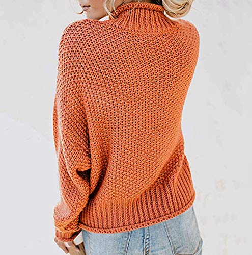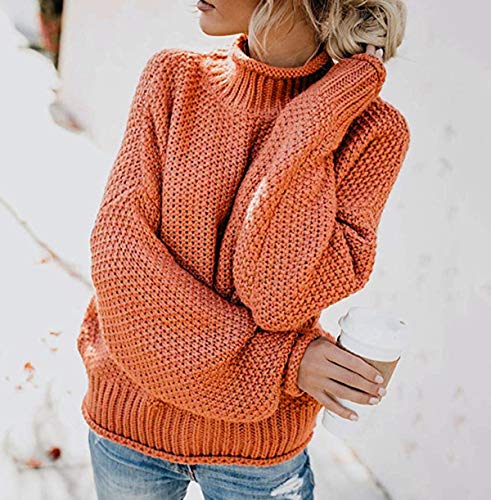 Jersey Punto Cuello Alto Mujer Oversize Sueter Mujer Suéter Jerséis Trenzas Jerseys Grueso Mujeres Sueteres Jerseis Invierno Largo Suéteres Señora Pullover Sweater Holgado Tallas Grandes Naranja XL