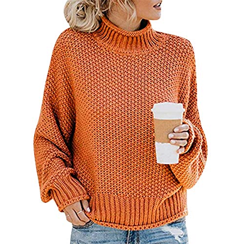Abollria Suéter de Punto Mujer Elegante Jersey Cuello Alto Elástico Turtleneck Pullover Sweater Manga Larga para Primavera Otoño Invierno Naranja, S