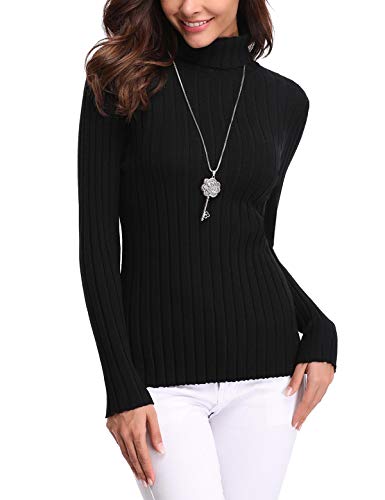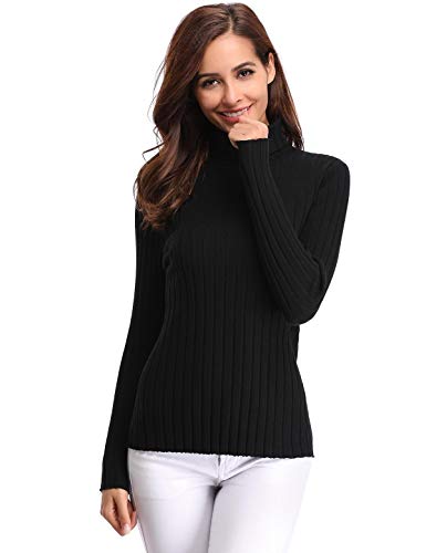 Aibrou Suéter de Cuello Alto para Mujer, Jersey Cuello Alto Manga Larga Mujer Primavera y Otoño ( Negro , S )