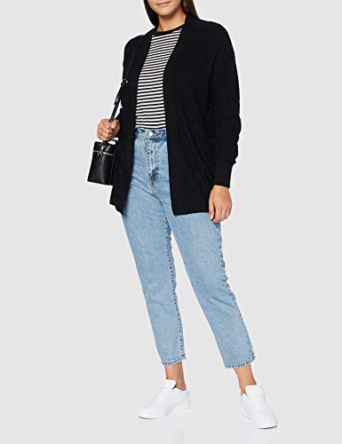 CNFIO Mujeres Cárdigans Chaqueta De Punto Jersey De Suelta Punto Frente Abierto con El Bolsillo (Negro-Nueva, S)