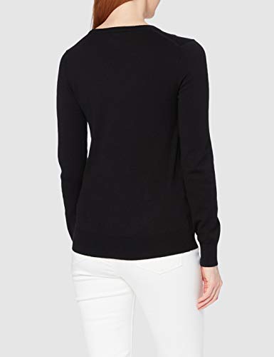 Marca Amazon - MERAKI Jersey de Algodón Mujer Cuello Redondo, Negro (Black), 38, Label: S