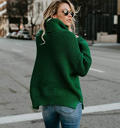 Jerseys de Punto Mujer Jersey Punto Cuello Vuelto Mujer Oversize Grueso Sueter Señora Gordos Ancho Sweaters Sweater Tejido Jerséis de Mujer Suéter Jerséy Pullover Sueteres Tejidos Invierno Verde S