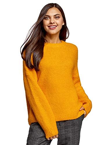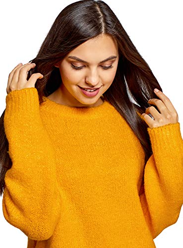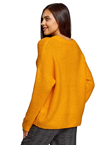 oodji Ultra Mujer Jersey de Punto Oversize, Amarillo, ES 38 / S